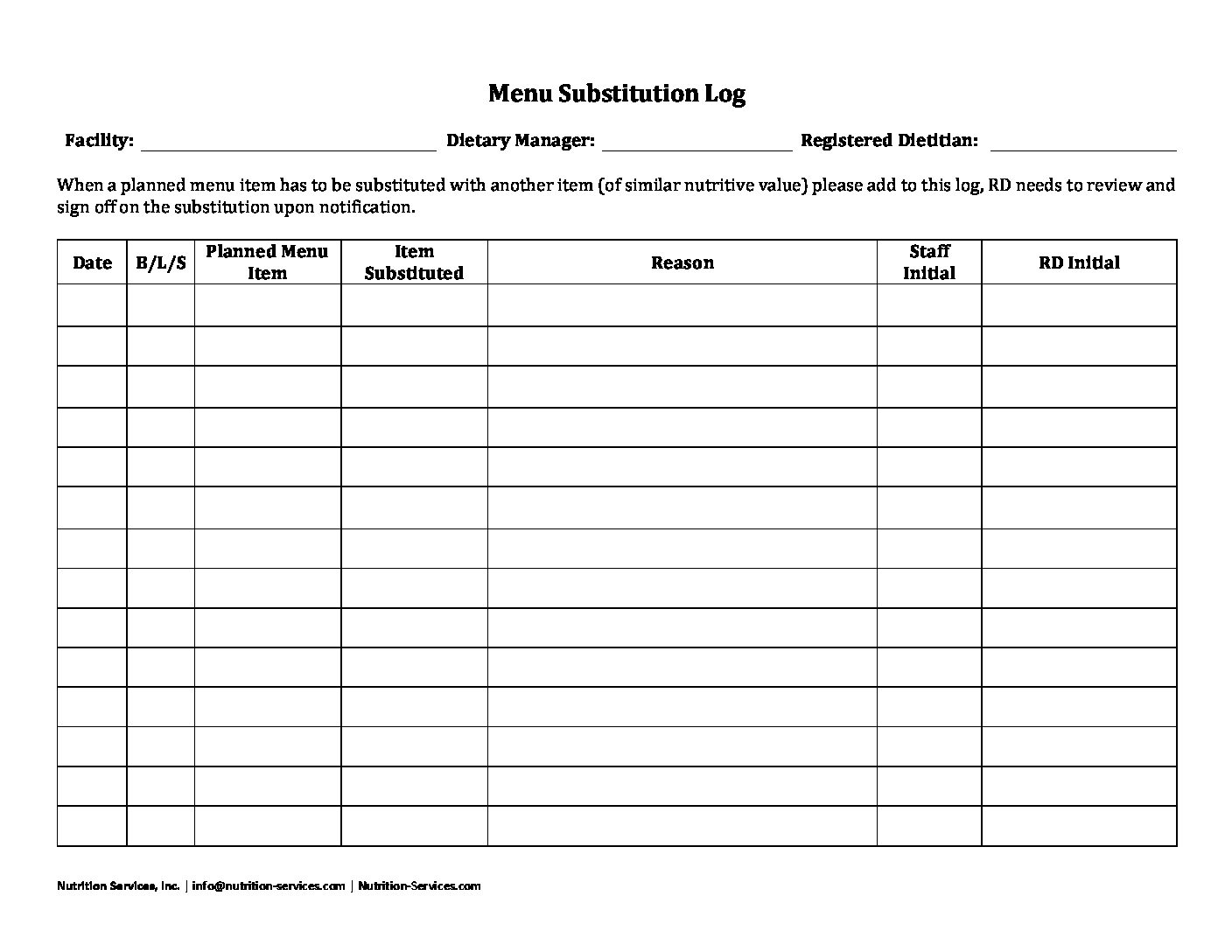 Menu Substitution Log